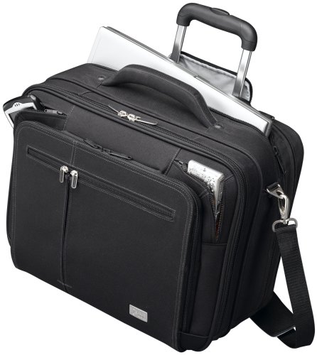 Take the weight off your shoulders with this rolling laptop case featuring in - line wheels and a telescoping handle. Stay organized while on the road with multiple storage files and compartments. Holds up to 15.4" laptops.PRODUCT FEATURES:Secure Fit Laptop Protection - Adjustable compartment snugly holds your laptop for ultimate protection. Adjust it once and it stays a perfect fit;Speed Pocket - A quick - access, secure pocket to put metal items (keys, watch, coins, etc.) prior to passing through airport security;Pleated, expandable compartment for organization of legal or A4 size papers and files.