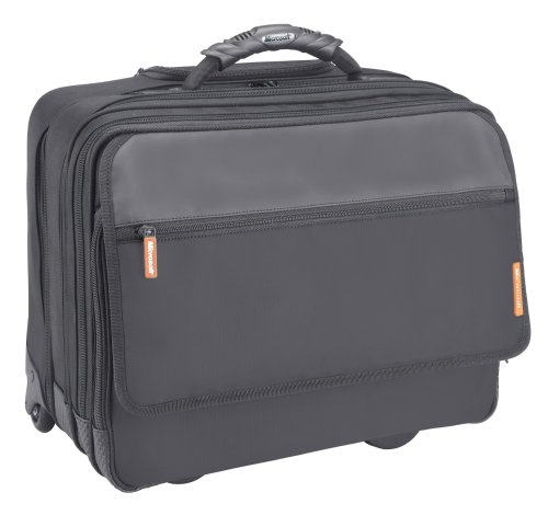 Removable case for laptops up to 17". Front pocket w/digital accessory panel. Zip compartment w/expanding files & accessory pkts. Back section w/mesh pockets & clothing straps. Locking 40" trolley.