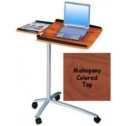 This handsome Laptop Desk is a convenient space saver. This table is fully adjustable. The two piece table top moves up and down as well as side to side and at different angles ensuring you the perfect desk set up. Each of the table panels include safety edges to keep the computer from sliding off. This laptop computer desk is made of MDF with a choice of wood grain, mahogany wood grain, or graphite finish on a silver powder coated steel frame that will last for years to come. There are 3 locking casters for easy mobility. Adjustable from 30" high up to 47" high. Great for college students. The height of the rolling base is 4.5".