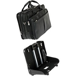 Exclusive Patented Removable Wheel and Handle System maximizes your travel options. McKlein's P Series Clinton 17 Detachable-Wheeled Laptop Case has a front organizer: media holder, pens, cell phone, business cards, and miscellaneous items. Main Compartment: accordion files for all your document needs. Padded main compartment for documents andor computer that protects laptops up to 15.4. SmartZipper coverts rear pocket to a panel that secures case to a separate wheeled case handle.