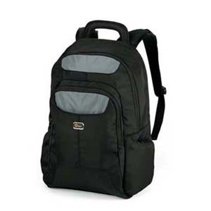 The Lowepro Transit Backpack Notebook Case is designed to carry a 15.4" widescreen or a slim 17" notebook computer. It includes numerous organizational pockets and a large section for books and personal accessories. It is carried by breathable, mesh-lined shoulder straps and a textured, padded handle.