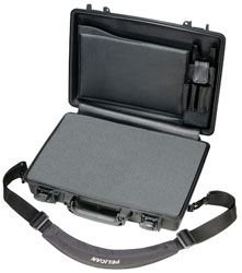 PRODUCT FEATURES:Watertight, crushproof, and dust proofFold down overmolded handleEasy open double throw latchesAutomatic pressure equalization valveStainless steel padlock protectorsLid organizer and padded shoulder strapFits up to 17" laptops3-dial combination lock included