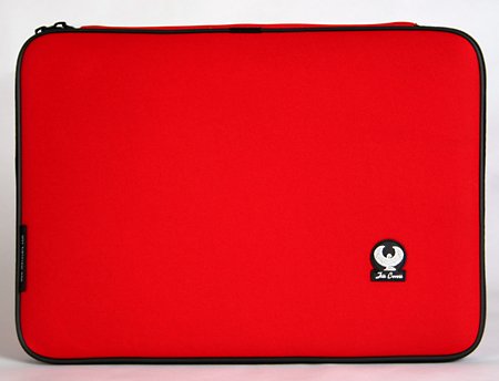 The Allyson cover is a red memory foam sleeve. The cover has a reverse zipper, an Isis PVC stamp, and custom molded zipper tabs. The sleeve is made out of 5mm memory foam, it has an inside lip to protect your laptop from the zipper, and it opens up so that you can use your laptop while sitting in the case.