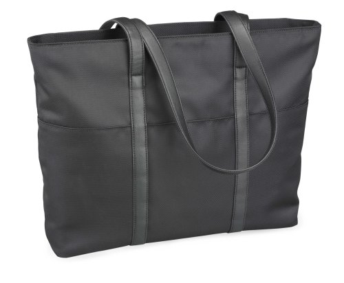 Styled for cost-conscious female with a mobile lifestyle, this Ladies Tote combines style with solutions for transporting all the digital accessories todays lifestyle requires. Whether youre off to the office, the classroom, a meeting, or a business trip, this bag, constructed durable lightweight poly with eye-catching kiwi lining, is designed with a place for all your digital accessories.  The padded notebook sleeve holds laptops with up to 15.4" screens in a large zippered compartment. A digital accessory panel holds phone, cards and pens.  Two outside slip pockets quick access.  Flexible, double loop handles make this bag easy to carry on the shoulder or arm. *Microsoft brand bags and accessories are manufactured by Samsill Corporation